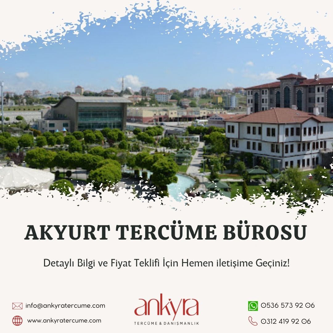 Ankara Akyurt’ta yeminli tercüme, noter onaylı tercüme, kurumsal tercüme veya acil evrak çevirisi ihtiyaçlarınız için bizimle iletişime geçebilir; uzman ekibimizden hızlı bir şekilde teklif alabilirsiniz.