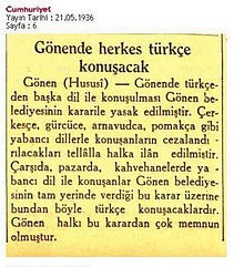 İronik bir şekilde kendi annesi de Arnavut olan Namık Kemal’in Atatürk’ün fikirlerini güçlü bir şekilde etkilediği biliniyor. Bundan dolayıdır ki tek parti döneminde “Vatandaş Türkçe Konuş!” kampanyası uygulamaya konuyor; Türkçe dışında bir dil konuşanlara para cezaları veriliyor. Kısa bir aradan sonra, uygulama tek parti döneminden 15 yıl sonraki 27 Mayıs İhtilali döneminde de canlanıyor. Bütün bunların, Lozan Antlaşması’nın 39. maddesi ihlal edilerek yapıldığını eklemek lazım: